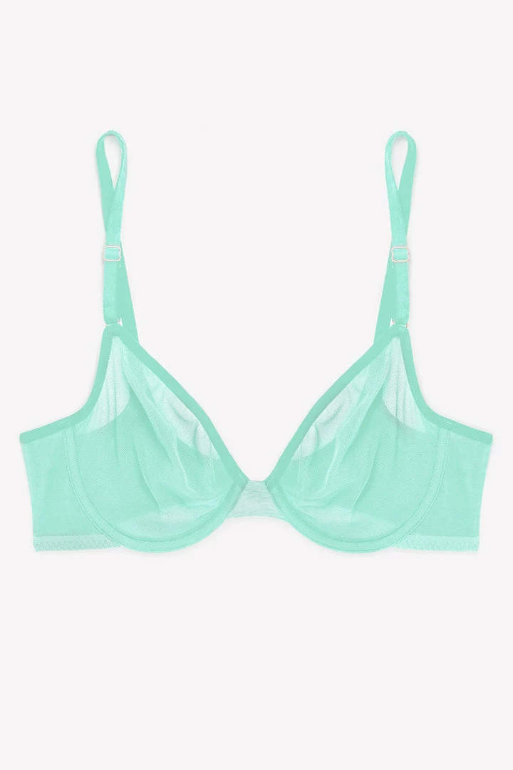 - This sheer unlined bra has two layers of mesh, and molded cups anchored with underwire support. These flirtatious demi cups are outlined with matte trim, highlighting your natural contours.