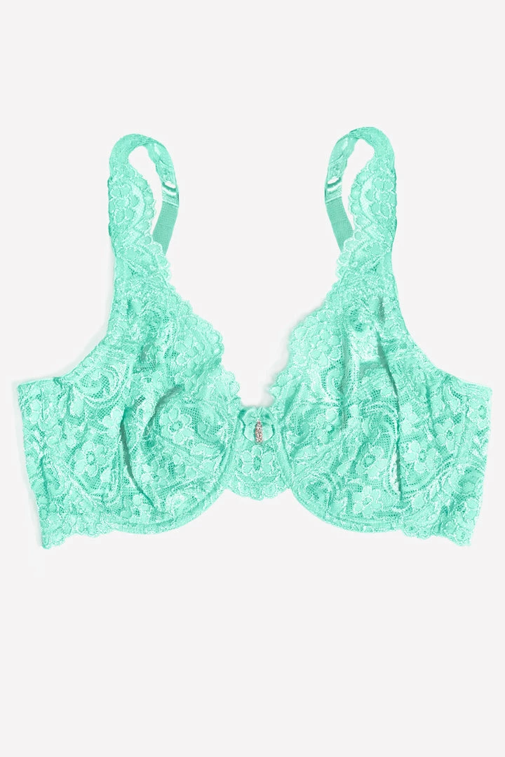 - Scalloped lace neckline and beautiful center gore bow and jewel detail make this bra perfect for everyday wear and special occasions.