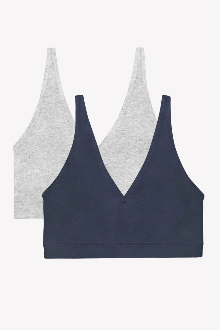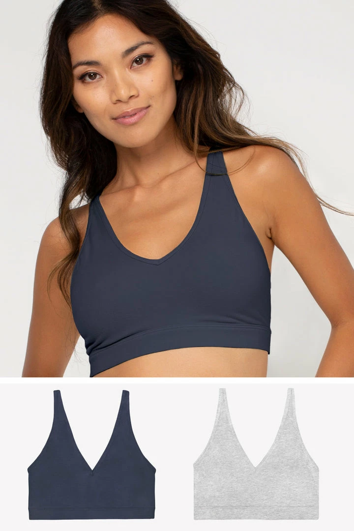 Long lasting comfort and effortless style starts with the Smart&Sexy Comfort Cotton Plunge Bralette 2 Pack. These cotton bralettes are made of soft, stretchy cotton. The best features of these women’s bralettes include removable cups for padding when you want them, and a natural shape when you don’t. A pullover style, this bralette top is wire free, and has an elastic band to provide extra support. Bralette top features front camisole straps, and a gorgeous deep V plunge in the front, and customizable straps allow you to wear this cross-back.