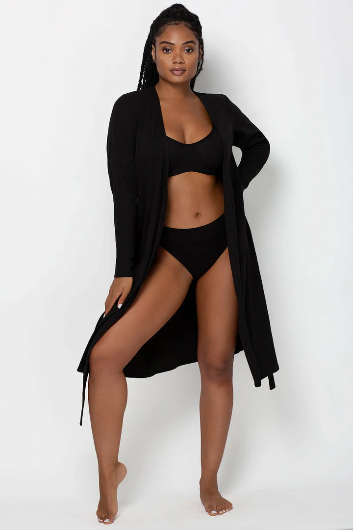 The Smart&Sexy Comfort Rib Cardigan is a timeless essential. This long cardigan is made of soft, stretchy ribbed cotton, cozy enough to wear out or lounge at home all day. The cotton cardigan features an open front and comes with a self-tie to easily wrap around. Cardigan is midi length and has relaxed fit, perfect for lounging. Pair with our Cotton Collection racerback dresses, bralettes, tanks, and biker shorts to complete the look.
