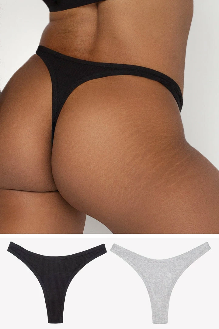 With a dip front style and high-cut legs, you’ll grab for the Smart&Sexy Comfort Cotton Rib High Leg Thong 2 Pack any day of the week. These high cut panties are designed with stretchy ribbed cotton fabric that lays snug against the body for a lightweight and breathable feel. Flattering for all body types, they have high cut leg openings to help elongate the look of your legs. These high leg thong panties have no back coverage.
