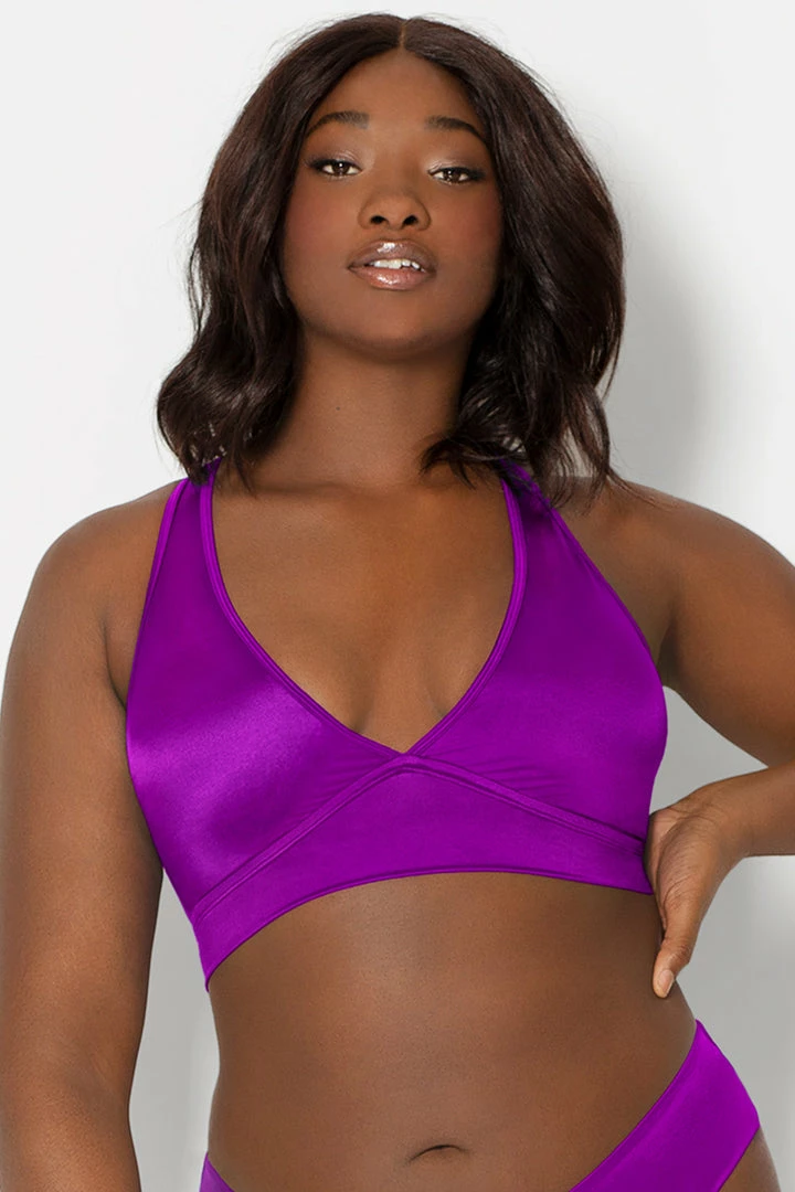 - Smooth, shiny stretch fabric and wide bottom band make this bralette perfect for days when you want to comfortable.