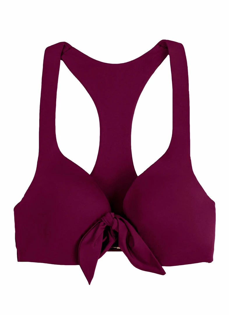 Sunshine is the only thing on our mind in The Front Tie Push-Up Bikini Top. Sporty racerback style with an added lift, this Bikini Top offers push-up padding and underwire support. Comfy and secure, this top is equipped with soft, stretch fabric that ties at the gore. Pairs perfectly with our Smart & Sexy Women’s Reversible Side-Tie Bikini Bottom.