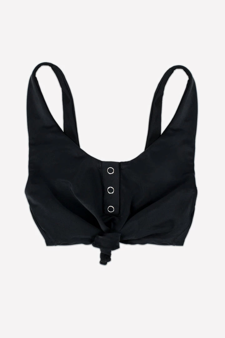 - Cute bikini with extra coverage and support, the Knot Front Crop Bikini Tip has smooth, stretch fabric, wide tank style straps and an inner shelf to keep you lifted and supported.