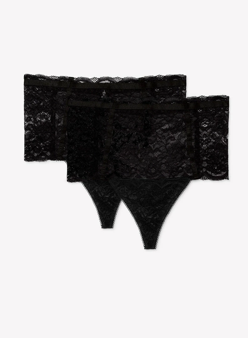 SAS Lace & Mesh High Waisted Thong 2 Pack | Black Hue Panties