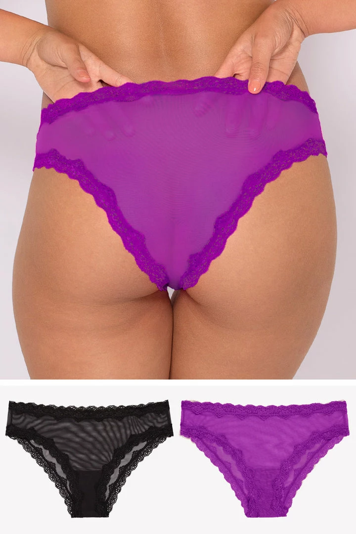 SAS Lace Trim Cheeky Panty 2 Pack | Fierce Violet/Black Hue