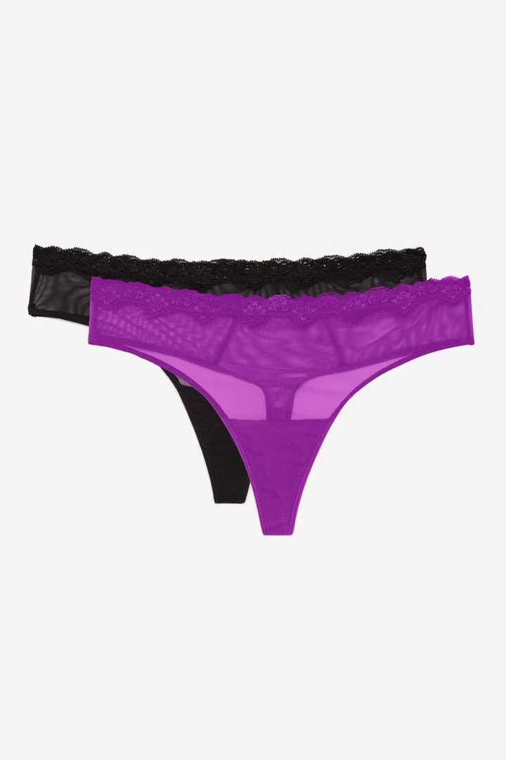SAS Lace Trim Thong Panty 2 Pack | Fierce Violet/Black