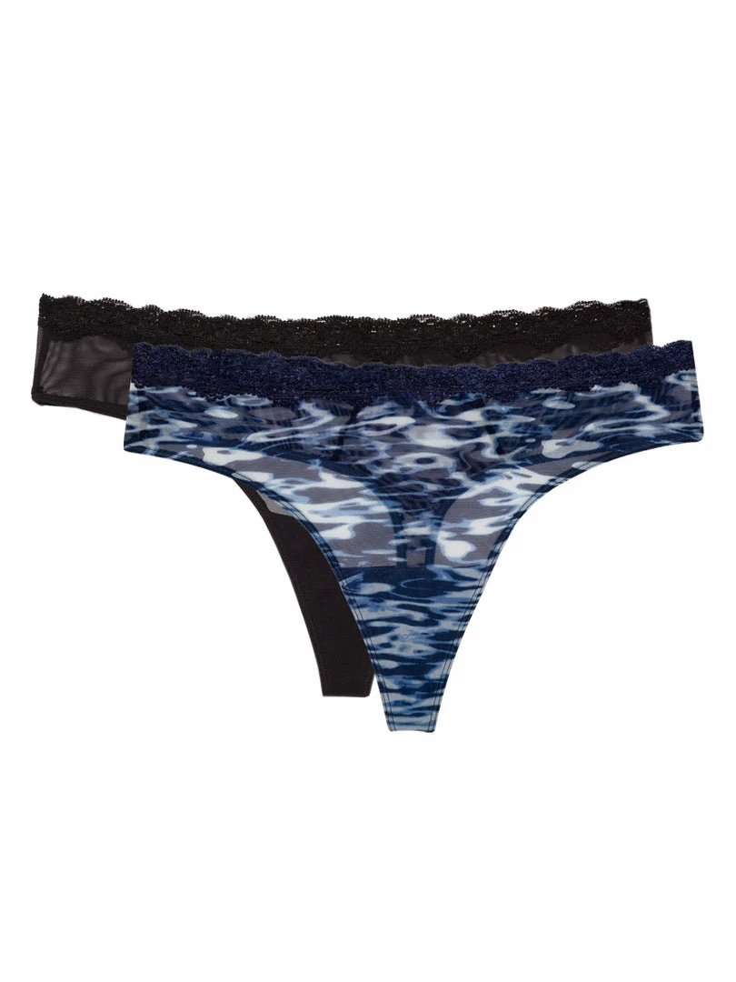 SAS Lace Trim Thong Panty 2 Pack | Fluid Fantasy/Black Hue Panties