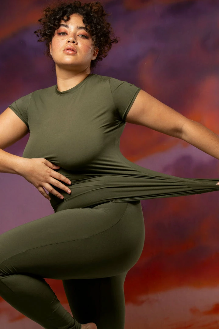 Introducing your new favorite t-shirt. The Stretchiest EVER Foundation T-Shirt provides next-level comfort with buttery-soft fabric that feels like a second skin. Super-stretch construction adapts to your body, so you’ll barely know it’s there. Crew neckline and fitted short sleeves pair perfectly with the Stretchiest EVER Foundation Legging for an effortless lounge set or under your favorite cardigans or sweaters. Great for lounging, layering and as an ultra-thin and stretchy swim cover-up.