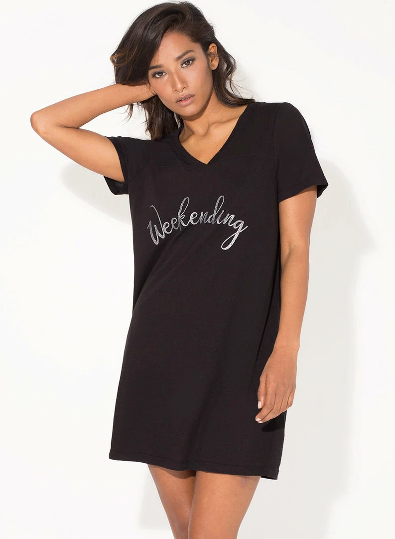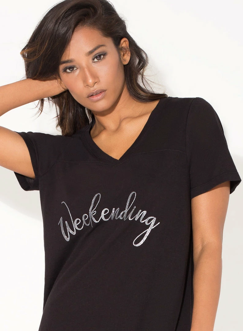 Everything is better in pajamas, especially in this V-Neck Sleep Shirt with oh so lounge-worthy graphics. Oversized, relaxed fit allows you to move freely while you lounge or sleep. Super soft and snuggly, the cottony fabric feels like a dream against your skin and its short sleeve style and lightweight feel help you stay cool. Perfect for yourself or as a gift, this oversized sleep shirt is what relaxing nights and weekends are made of.