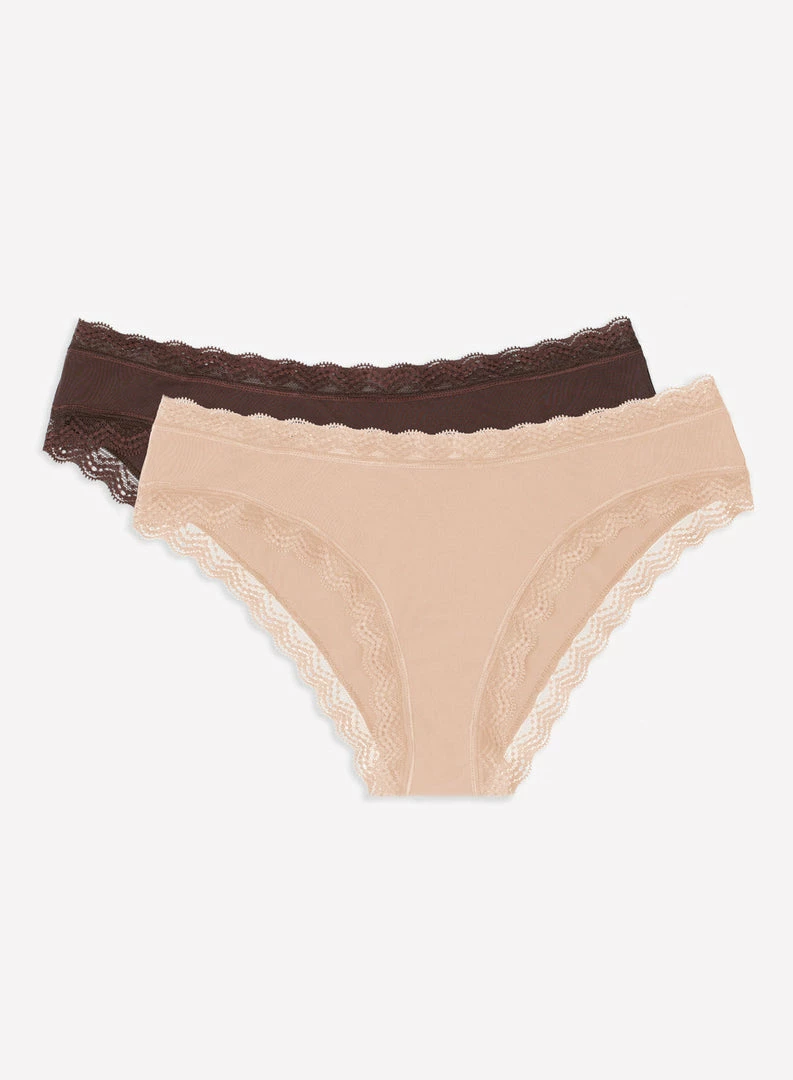 SAS Panties Lace Trim Cheeky Panty 2 Pack | Brush/Root Beer