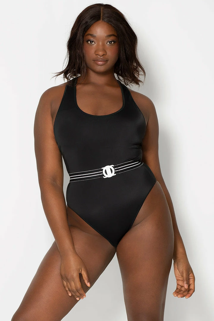 SAS Racerback One Piece Swimsuit | Black Hue W/ Stripe Belt