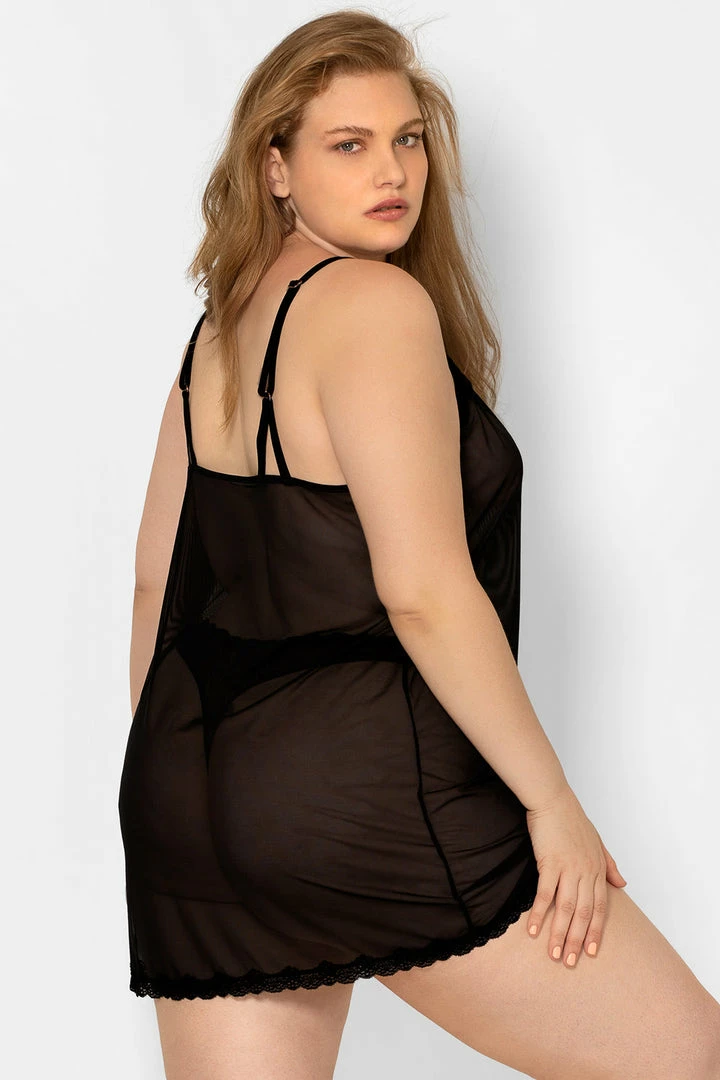Slip into something a little more daring. The Sheer Lace & Mesh Chemise Lingerie is simply sexy on all body types. Silky-smooth, stretch mesh floats over the body for a relaxed fit, showcasing your natural silhouette. Subtle v-neck, back strappy details and scalloped lace trim add sophisticated and modern touches. Plush, velvety straps make this women’s chemise adjustable.