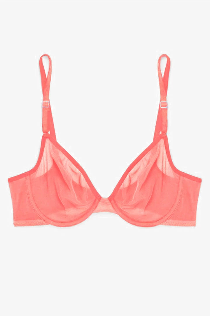 - This sheer unlined bra has two layers of mesh, and molded cups anchored with underwire support. Smooth lace styles lay flat under clothes and are lined with mesh.