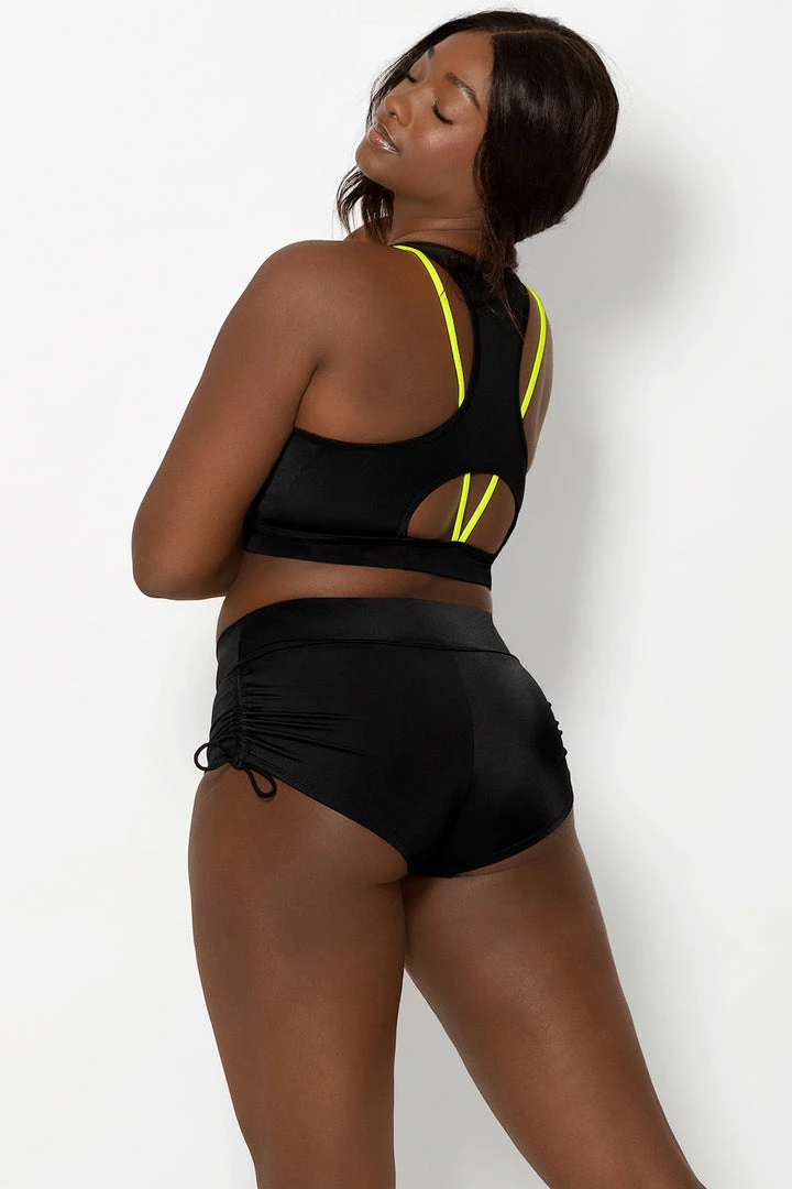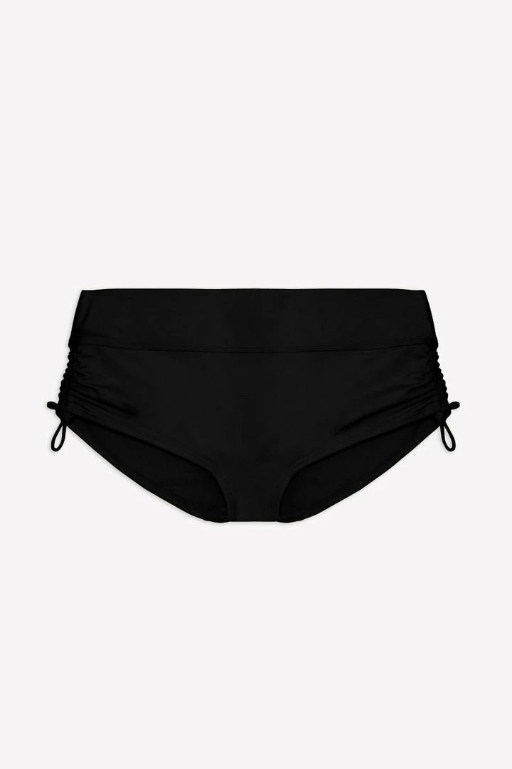 - Dual purpose adjustable side ties create a figure flattering ruched bikini bottom look, tighten for cheekier style or loosen for a more modest fit.