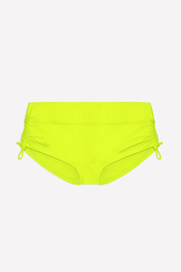 - Dual purpose adjustable side ties create a figure flattering ruched bikini bottom look, tighten for cheekier style or loosen for a more modest fit.