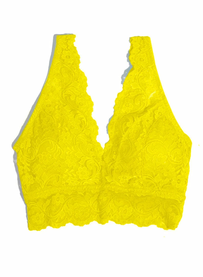 - Lace bralette features extra wide front camisole straps, and a gorgeous deep V plunging neckline in the front and back to showcase your best cleavage.