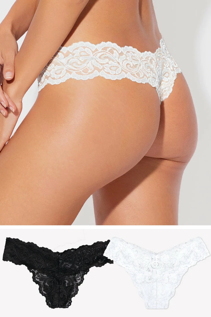 - Lace thongs can be worn low on the hips for a hipster panty look, or higher on the hips to elongate the look of the legs.