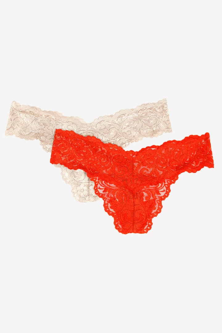 - Lace thongs can be worn low on the hips for a hipster panty look, or higher on the hips to elongate the look of the legs.