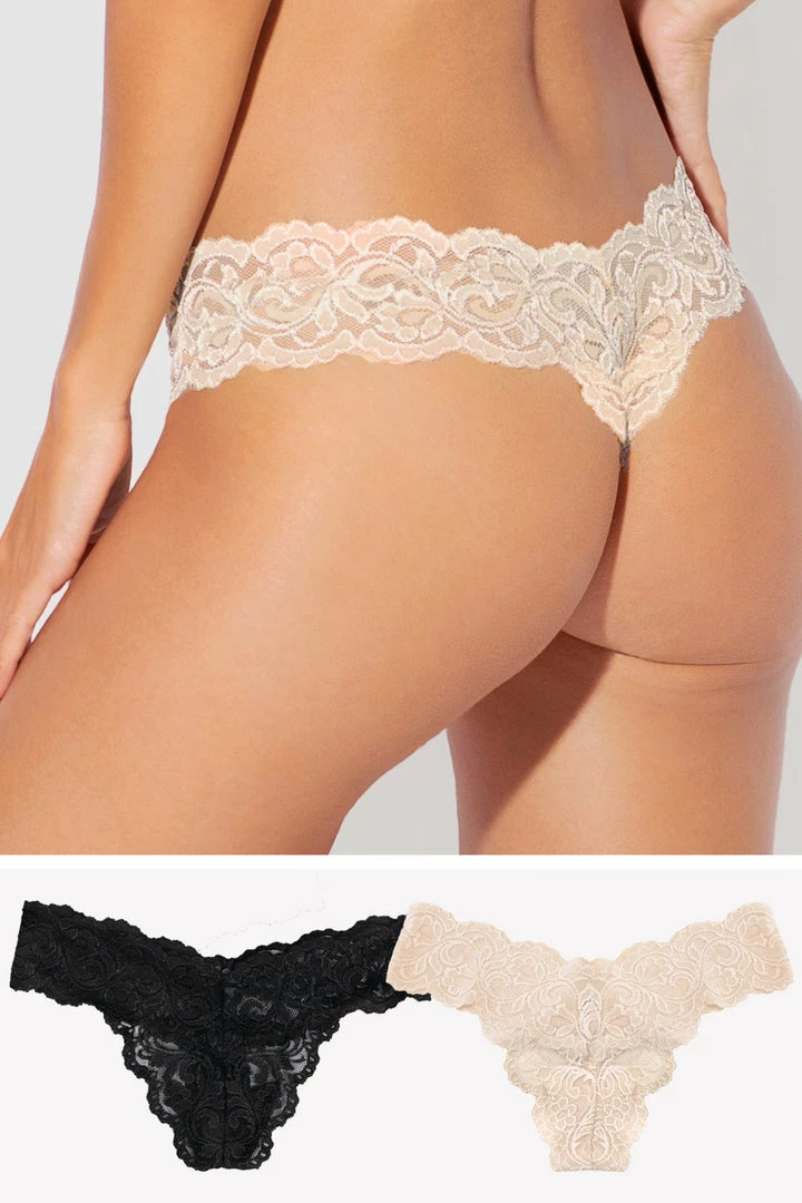 - Lace thongs can be worn low on the hips for a hipster panty look, or higher on the hips to elongate the look of the legs.