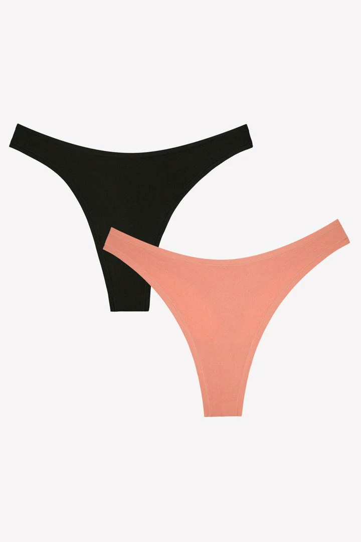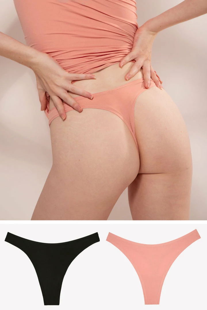 Our smoothest, most comfortable thong panties yet- The Naked Dip Front Thong 2 Pack provides next-level comfort with buttery-soft fabric that feels like a second skin. Super-stretch construction adapts to your body – never digging-in or pinching. Featuring a retro high leg cut, midrise fit, and a thong back for zero visible panty lines.